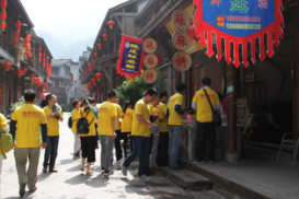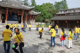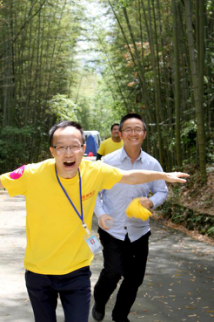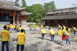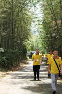 古鎮(zhèn)通關(guān)活動結(jié)束,拓展第二關(guān)---攀爬楠竹山,為增加趣味性,到達(dá)終點(diǎn)后還需返回到陽平觀中尋找神秘人,先行取得神秘人簽名者獲勝。隨著裁判一聲令下,3組隊(duì)員從起點(diǎn)出發(fā),沿盤山小徑一路向上,爭相向終點(diǎn)跑去。各隊(duì)組員友愛合作,互相鼓勁助威,最后多潘隊(duì)全隊(duì)率先達(dá)到終點(diǎn),幾經(jīng)周折找到隱藏在陽平觀內(nèi)的神秘人,獲得本次活動的第一名。
